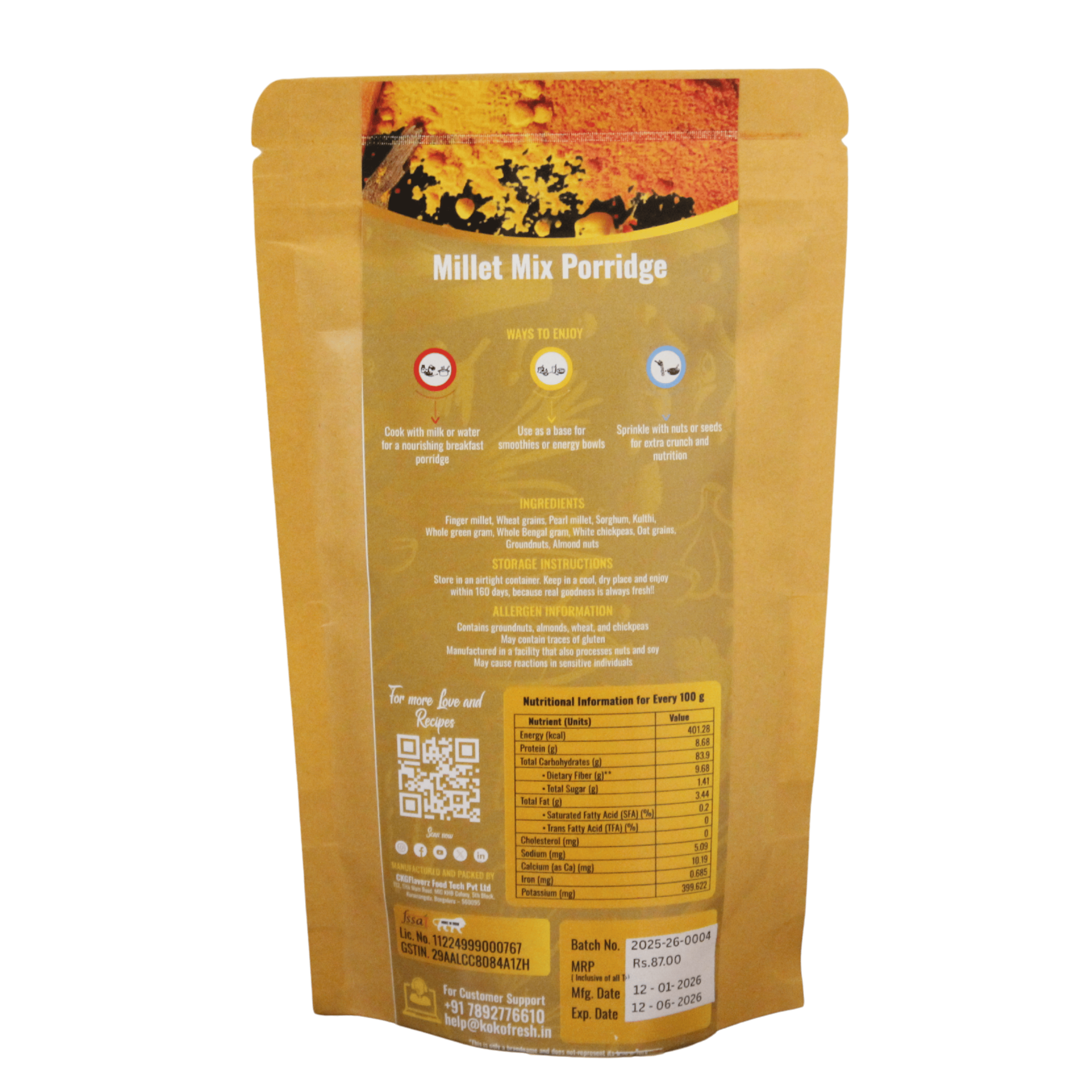 Rediscover grandmother’s wholesome recipe with our nutrient-rich blend of ragi, jowar, bajra, green gram, horse gram, groundnuts, and almonds.