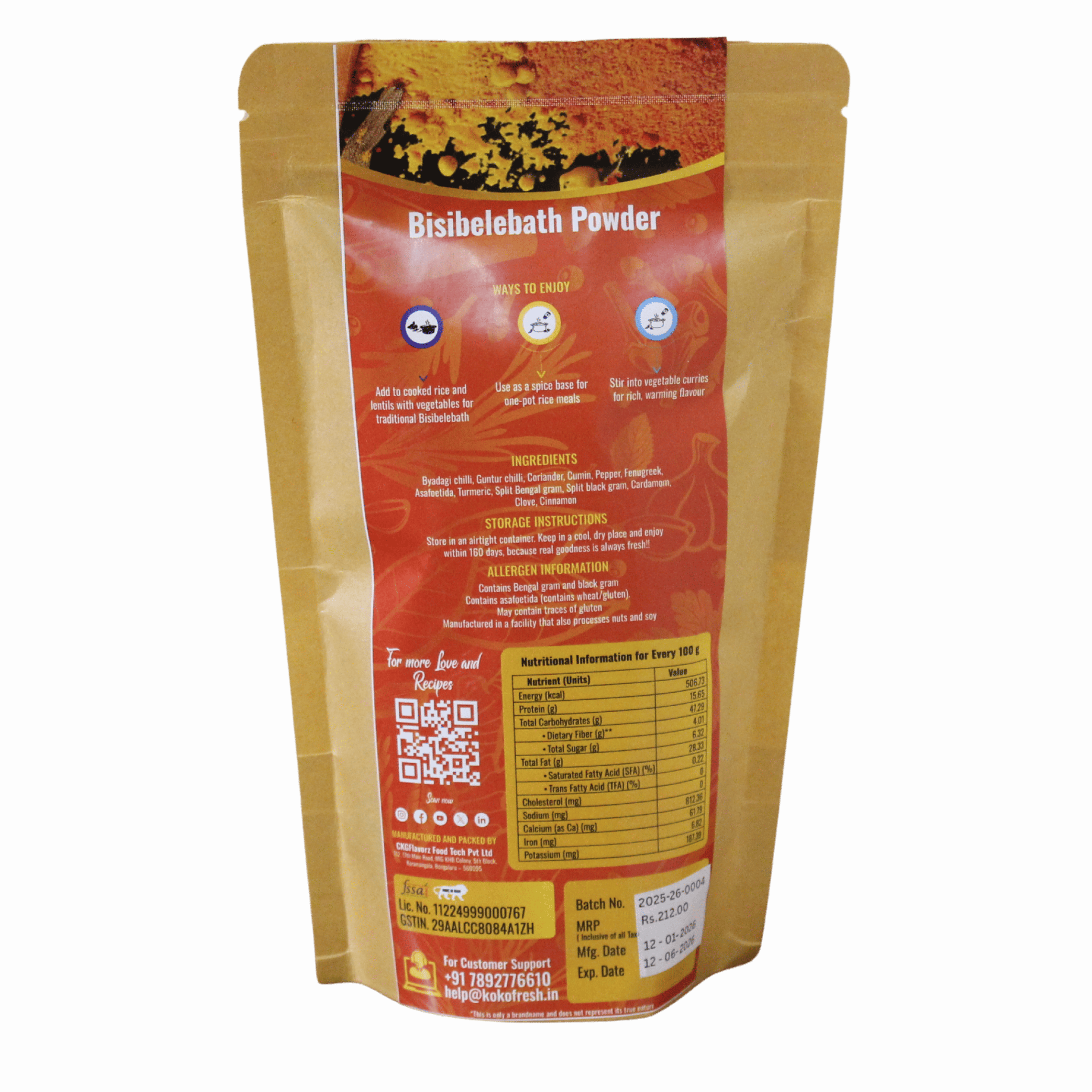 Real ingredients. Traditional process. Honest flavour - just the way bisibelebath masala should be.